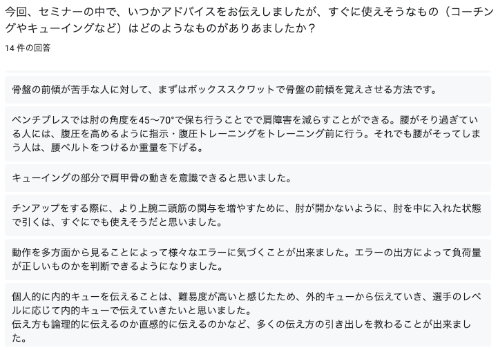 トレーニング指導者向けに行ったリモートコーチングの例